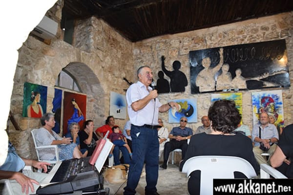 افتتح المعرض الأستاذ جورج توما بكلمة ترحيبية لجميع الحضور مؤكداً على أهمية ودور الفن في حياتنا , فيجب علينا أن نعزز علاقاتنا ونشاطاتنا في هذا المجال . وشكر الفنان ايليا بعيني والفنانة نوعمي المبادرة لفكرة المعرض وسكرتيرة الجمعية الأخت نادرة شحادة على مجهودهم في تحضير وترتيب وإنجاح المعرض .